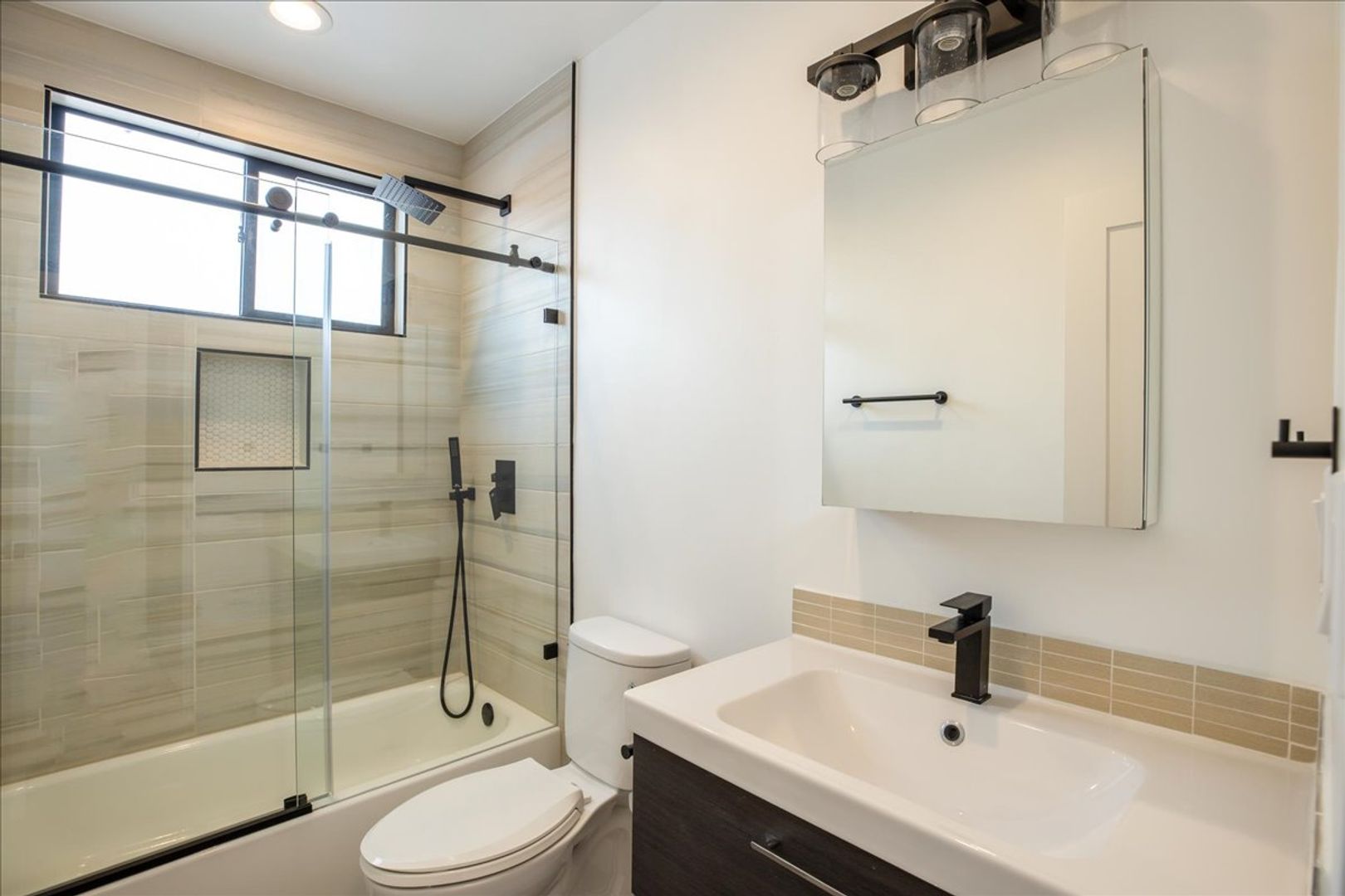 This reimagined second floor apartment was designed with a modern touch and offers a spacious floor plan with a dinning area, balcony, brand new kitchen cabinets, countertops, and stainless steel appliances, and recessed lighting throughout. The bathrooms has been fully reimagined with a brand new floating vanity, modern light fixtures, and new top of the line shower/bathing fixtures. Featuring a walk-in closet in the bedroom, brand new state of the art stackable washer / dryer, and split air condition + heat systems in the bedrooms and living room. This one won't last long!