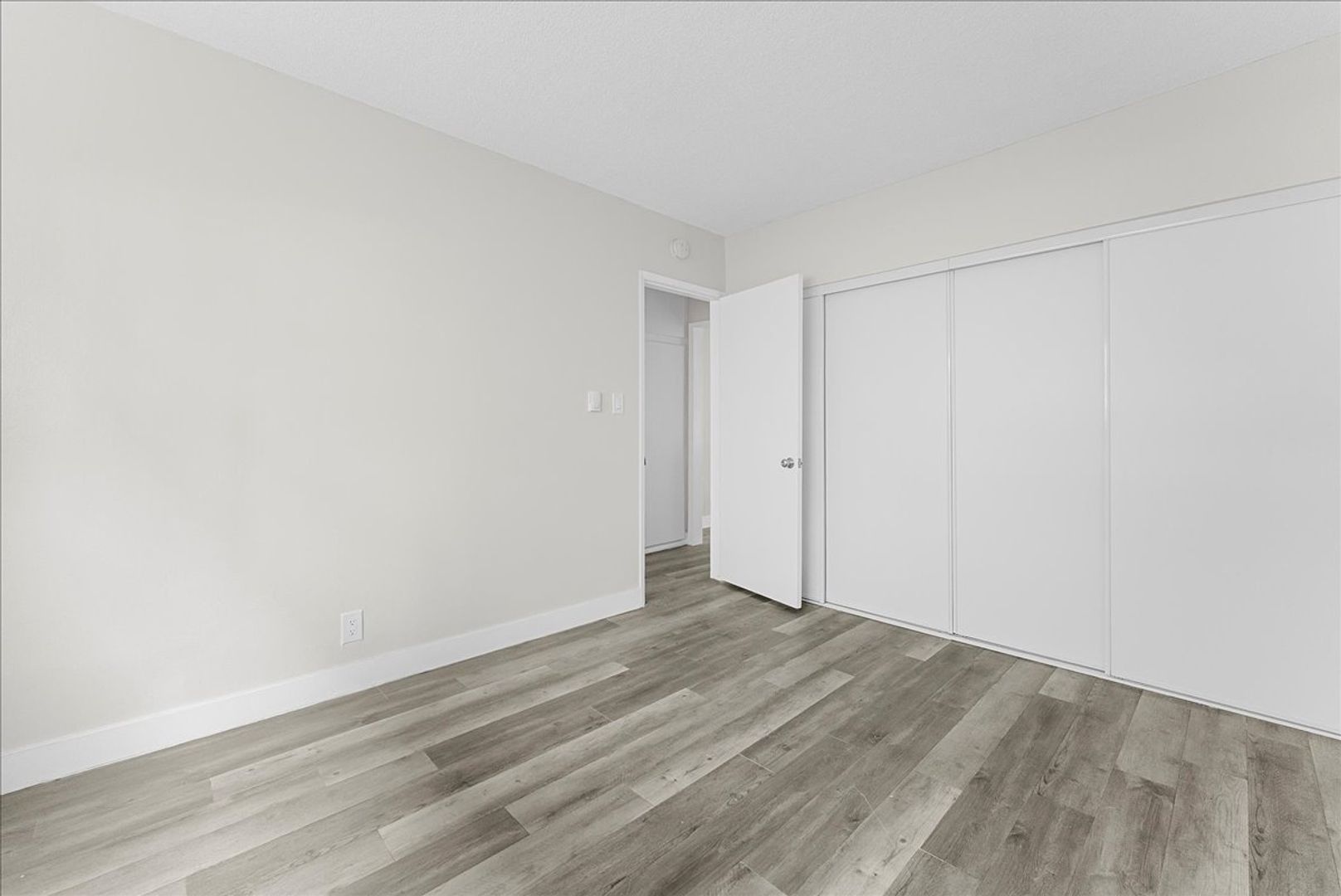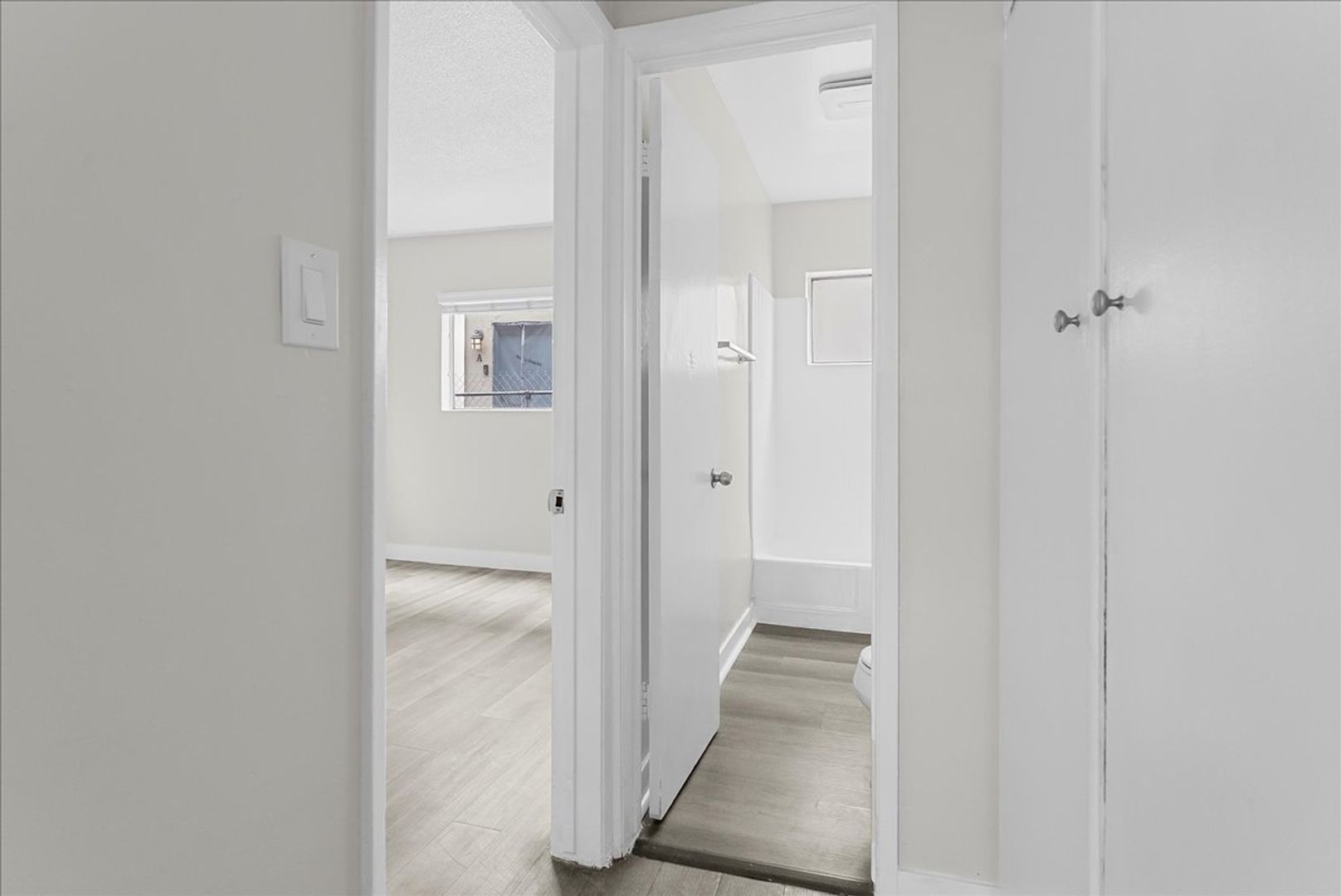 Throughout the apartment, you’ll find beautiful new flooring, fresh paint, and new window treatments that bring a modern, polished feel to every room. The hallway features extra storage cabinets for added convenience, leading to a stylish bathroom and a spacious bedroom with a wall-to-wall closet enclosed by mirrored sliding doors.