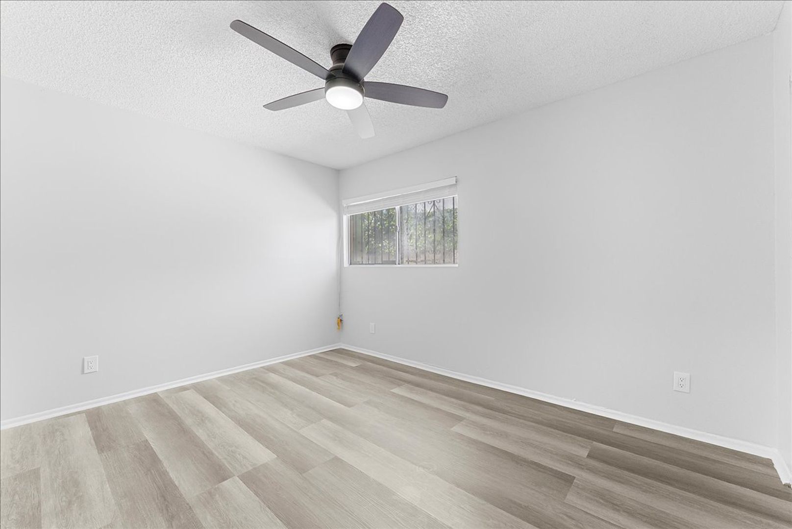 Both bedrooms are generously sized and include built-in closets and ceiling fans, creating comfortable retreats with practical storage. Situated within a boutique apartment community in a quiet neighborhood setting, this home offers the balance of privacy and accessibility. Residents enjoy shared on-site laundry facilities and one assigned parking space for added convenience.