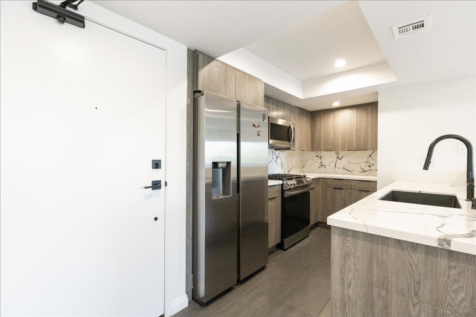 The apartment boasts a fully equipped gourmet kitchen, designed with both style and functionality in mind. It offers sleek countertops, premium stainless steel appliances, and ample storage space, perfect for entertaining friends and family. Whether you're hosting a dinner party or preparing a quiet meal for yourself, this kitchen is sure to exceed your expectations.