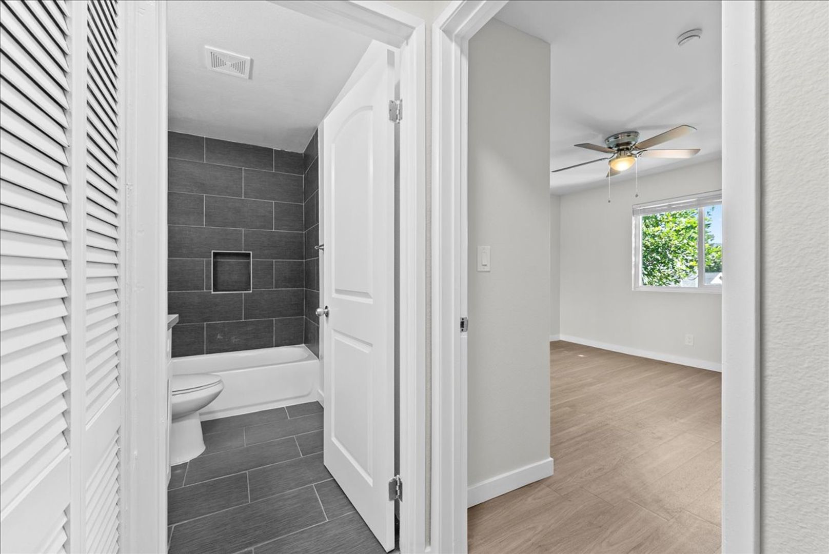 The living room offers generous space to stretch out in comfort—or host lively gatherings—while the entire unit enjoys a newly installed wall-mounted split heating and cooling system, giving you year-round climate control with modern efficiency. Retreat to the bedroom, where you’ll find a ceiling fan overhead and a built-in closet with mirrored sliding doors for a sleek, polished finish. In the bathroom, updated modern fixtures bring clean lines and a fresh feel to every visit.