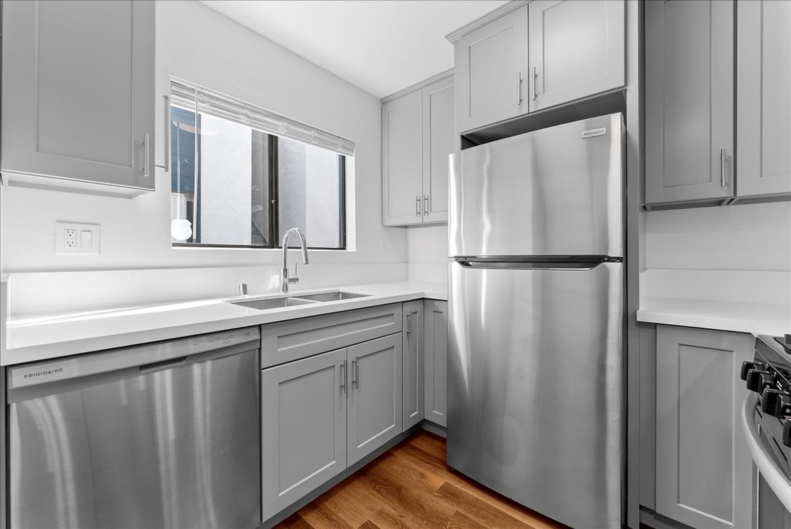 Welcome to your new Glendale home! Nestled on a quiet, tree-lined street, this spacious two-bedroom apartment offers both comfort and style. Upon entry, you’re welcomed by a well-designed U-shaped kitchen with generous countertop space, ample cabinetry, and modern stainless steel appliances, including a refrigerator, stove, and dishwasher.
