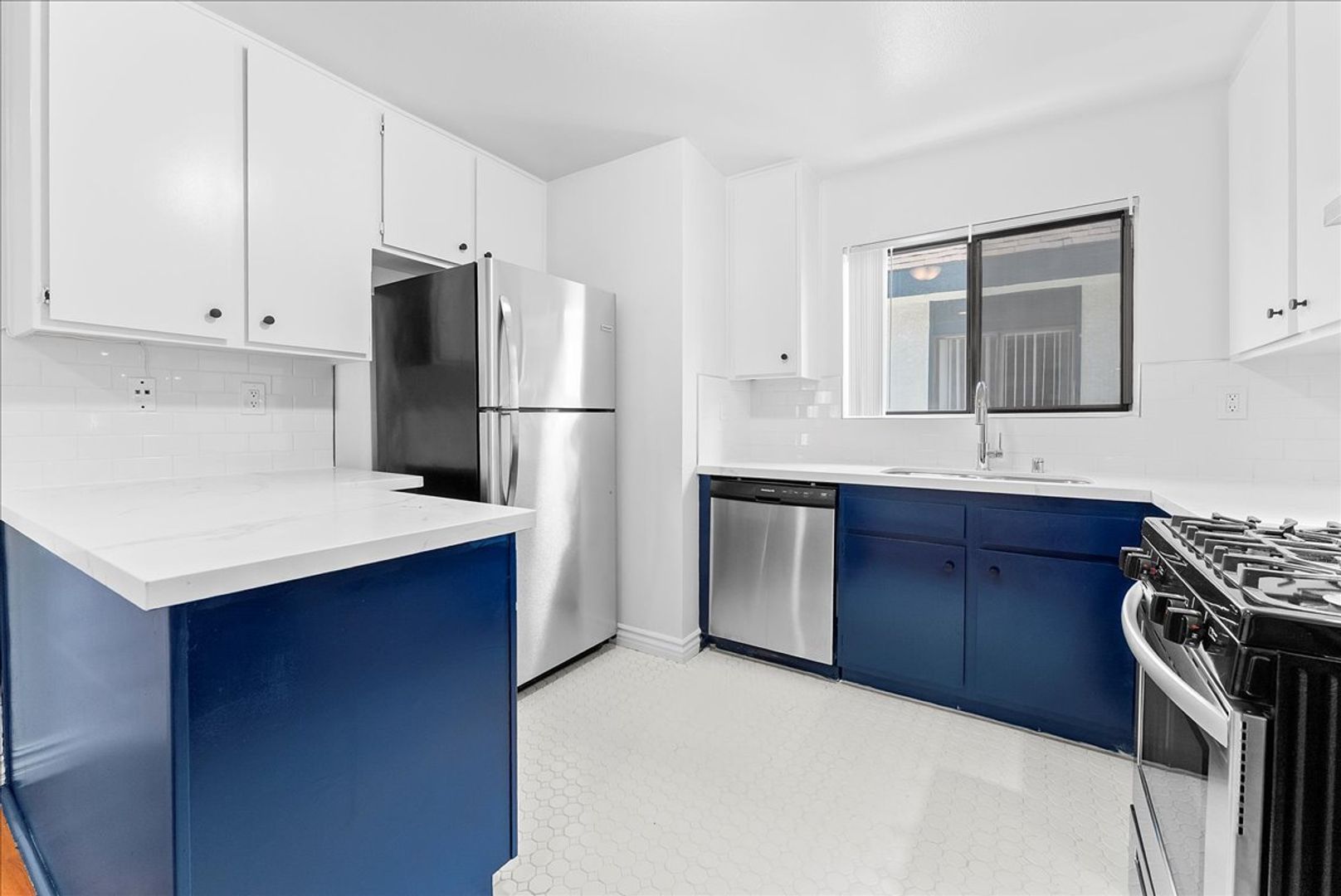 Welcome to your new Glendale home! Nestled on a quiet, tree-lined street, this spacious two-bedroom apartment offers both comfort and style. Upon entry, you’re welcomed by a well-designed L-shaped kitchen with generous countertop space, ample cabinetry, and modern stainless steel appliances, including a refrigerator, stove, and dishwasher.
