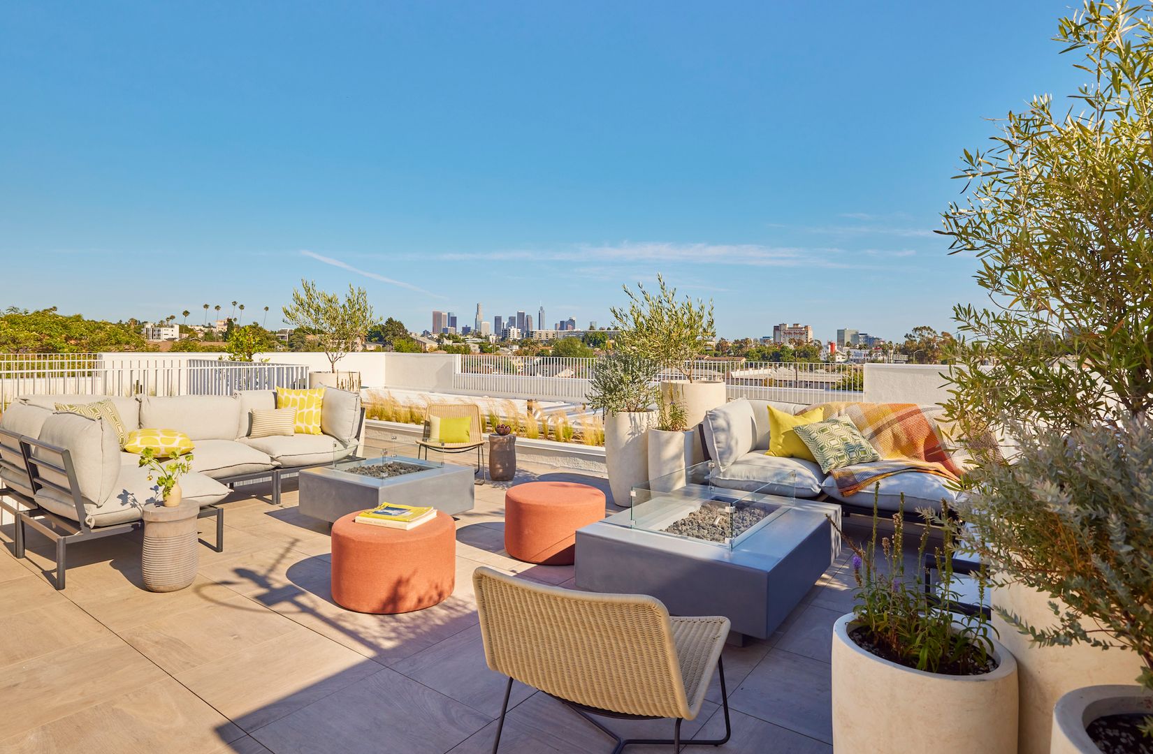 Life at Rivo offers the privacy of luxurious one- and two-bedroom apartments, access to unparalleled views of DTLA, the Hollywood Sign, and Griffith Observatory from the Rooftop Fire Pit Lounge, Rooftop BBQ, and Rooftop Lounge, and all modern-day conveniences of apartment living. Each turnkey unit offers an abundance of natural light, private outdoor balconies, and a natural bleached oak finish palette with top of the line appliances, in unit washer dryers, and ensuite bathrooms.