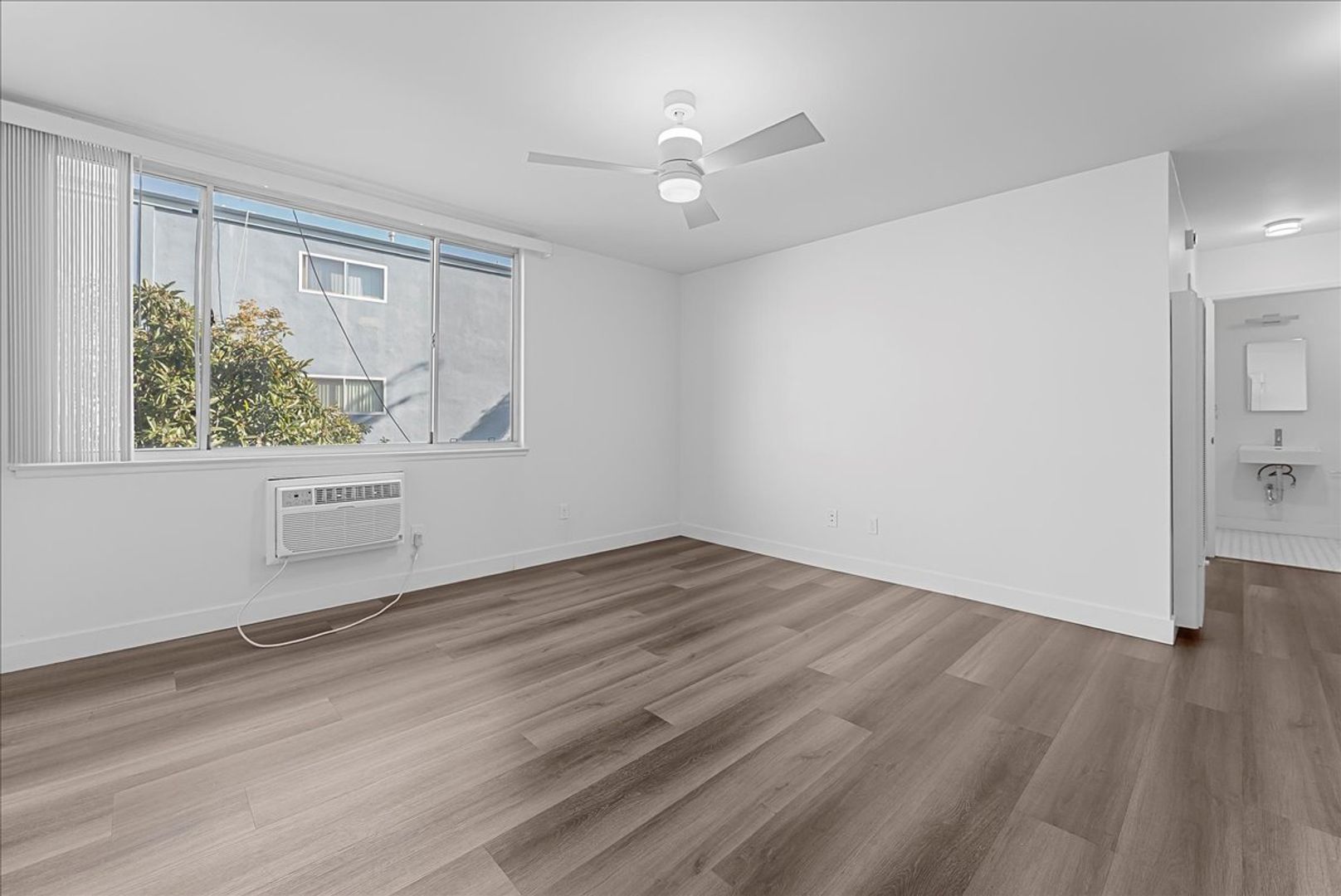 Welcome to 2736 Pomeroy Ave, Unit 213 — a bright and inviting one-bedroom retreat nestled in the heart of Boyle Heights. Perched on the second floor of a quiet, tree-lined street, this thoughtfully designed home offers the perfect blend of comfort, convenience, and contemporary style. Step inside to discover a spacious floor plan that feels open and airy from the moment you walk in. The alley-style kitchen features sleek stainless steel appliances—including a refrigerator, stove, microwave, and dishwasher—along with generous countertop space and plenty of cabinetry for all your cooking needs. Enjoy meals in the designated dining area under the gentle breeze of a ceiling fan, or unwind in the expansive living room, complete with a wall-mounted air conditioner and ceiling fan for year-round comfort.